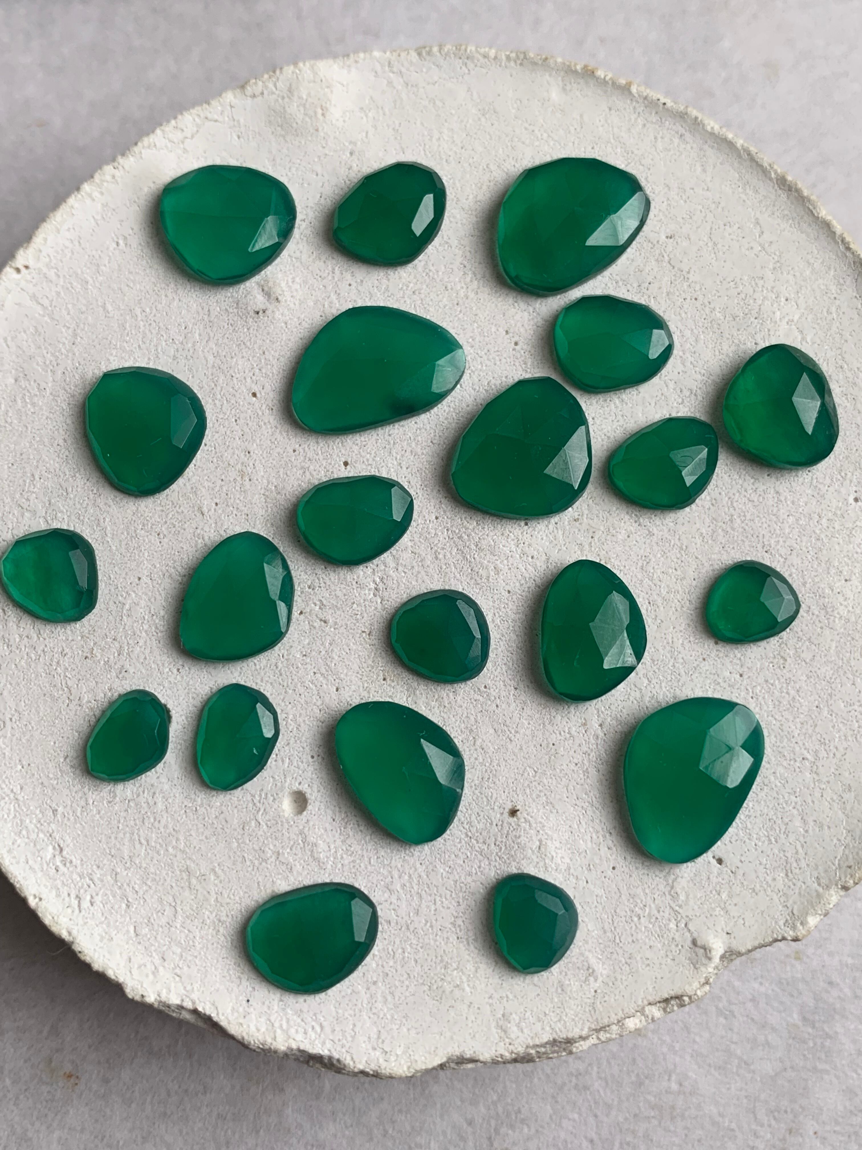 ローズカットのグリーンオニキスルース2個セット